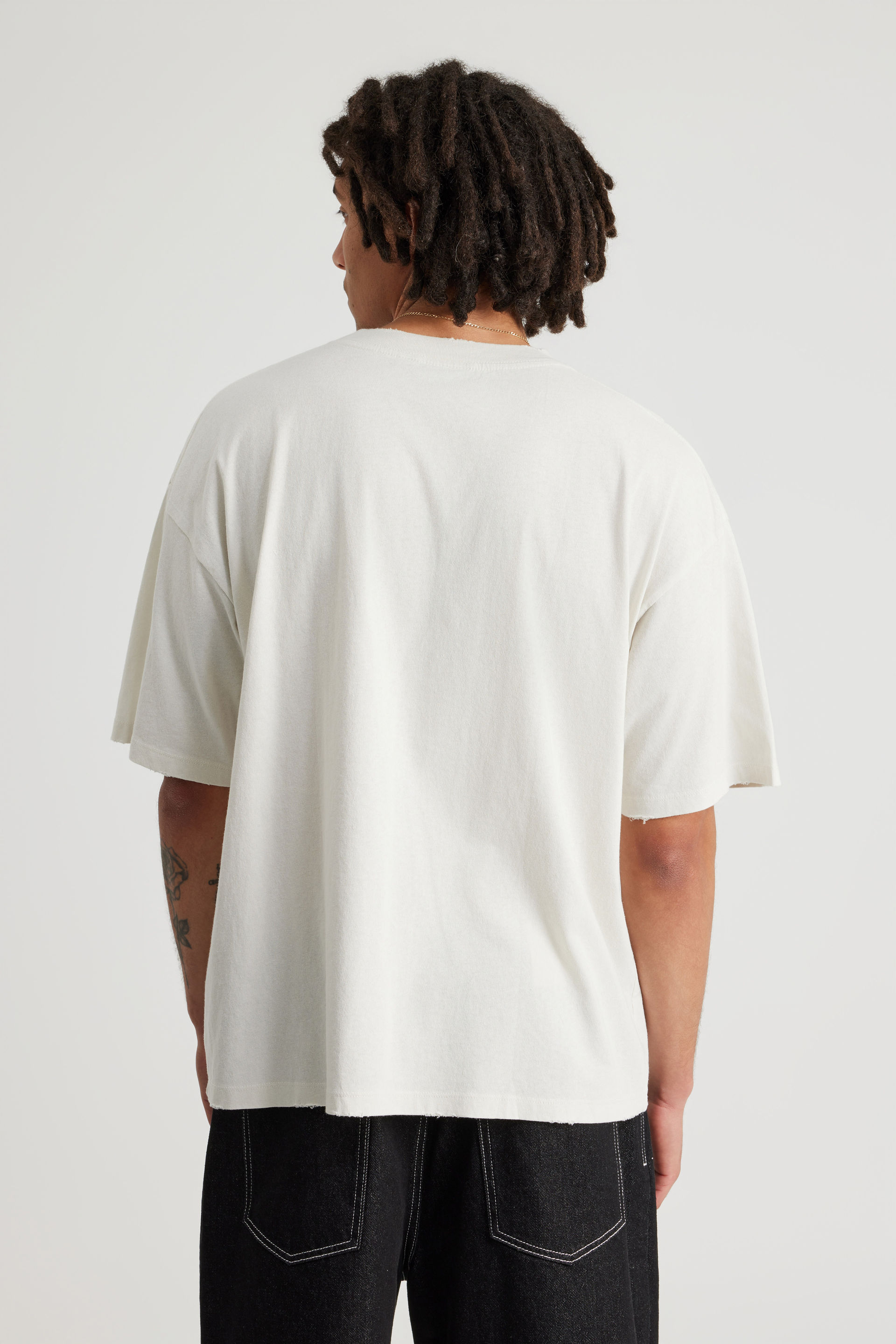 Confidence, built in. This tee brings heavyweight feel and oversized energy - wide boxy cut, drop shoulder, longline length. Cotton build with everyday comfort and an easy edge, plus a graphic print that adds a hit of attitude. Tuck it into denim or layer it under fleece for instant outfit energy.