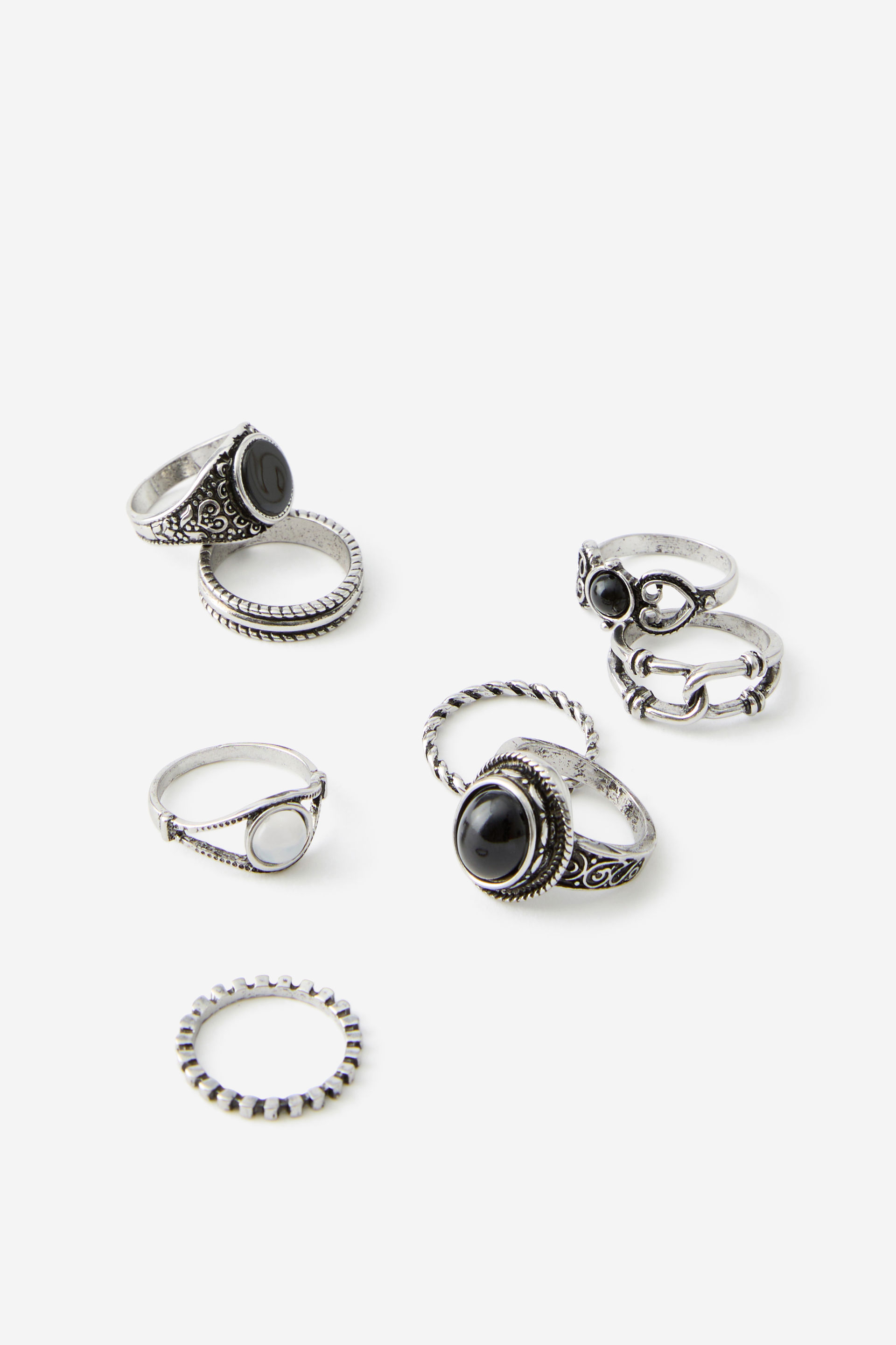 Assorted Ring Pack with a mix of chunky and thinner rings. Contains black stones