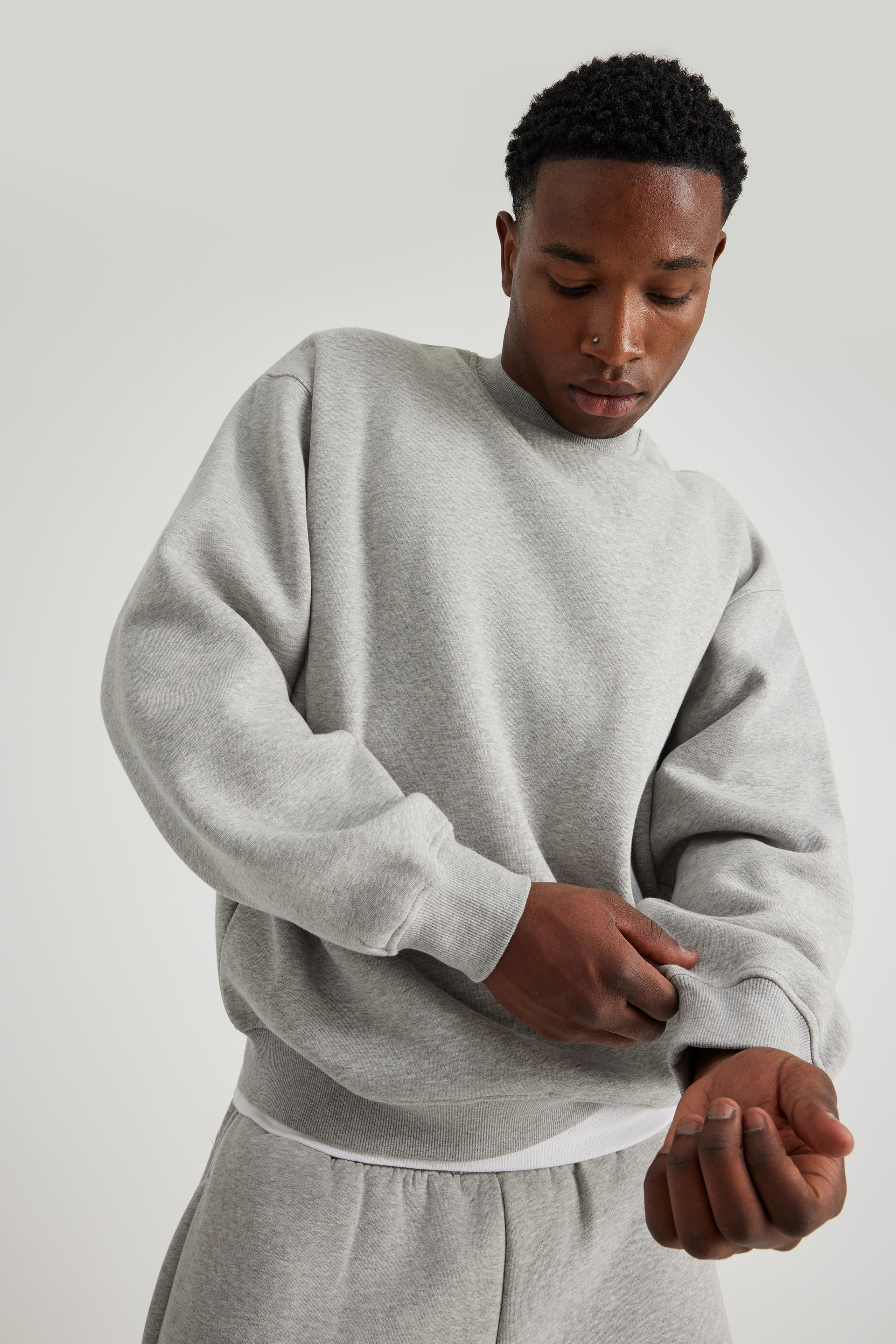- Ribbed cuffs and hem