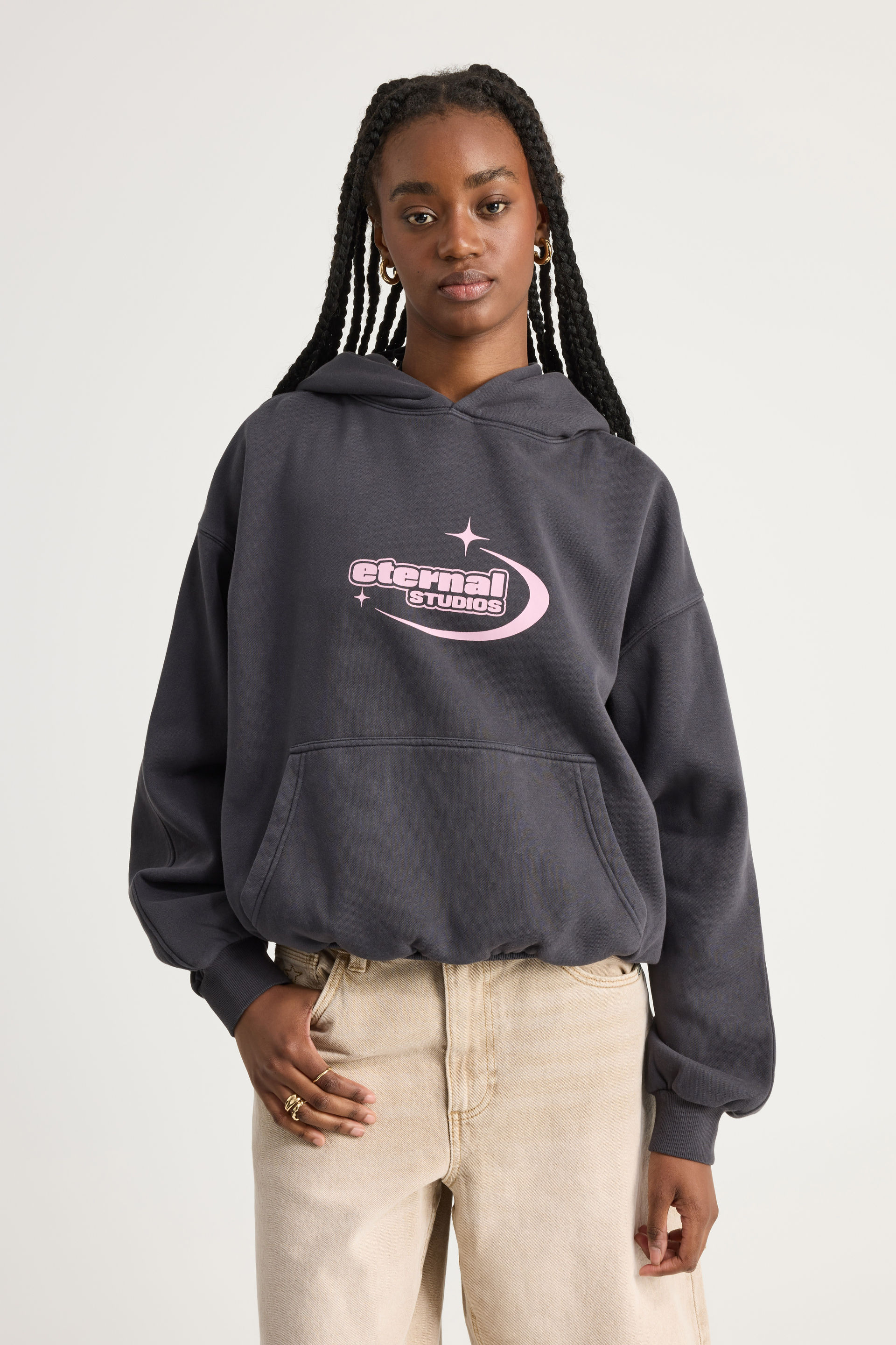 Slightly baggy - fitted silhouette Heavy weight fabric to keep you extra warm Drop shoulder for the ultimate comfort. Front pocket for your lip balm, phone, wallet, keys, snacks & everything in between