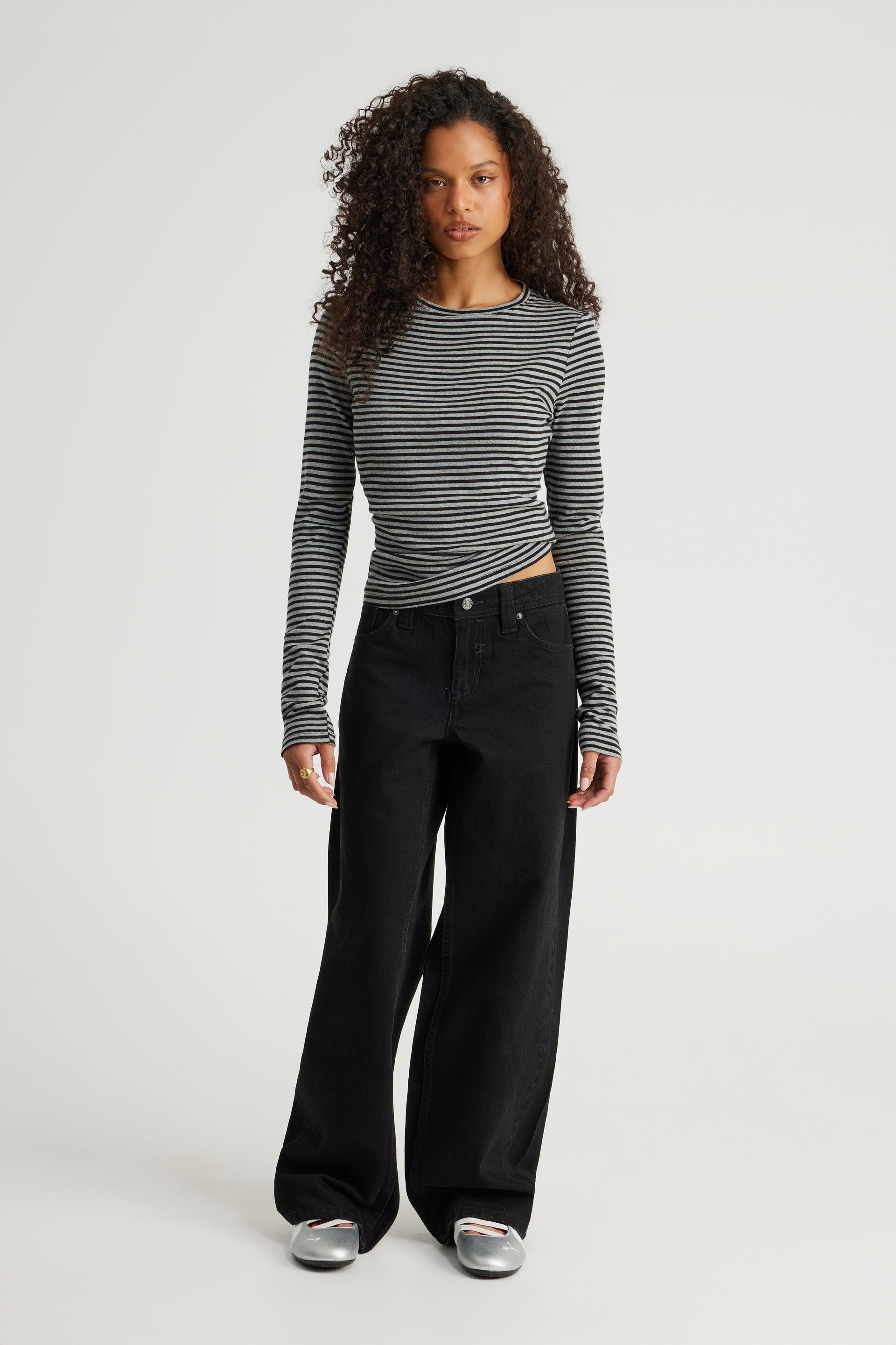 Easy chill. Big energy. The Fitted Long Sleeve Top brings everyday comfort with an easy edge - soft cotton build, fitted silhouette, and clean stripe print that works for the office or off-duty rotation. Round neckline and full sleeves keep it polished without trying too hard. Tuck it into denim or layer it under a blazer for instant outfit energy.