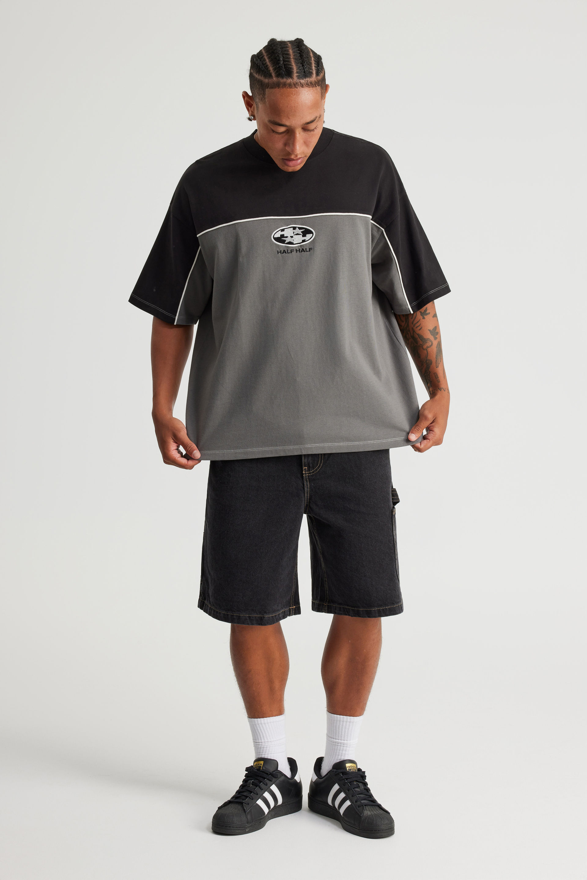 Half Half Box Fit Panelled Graphic Tshirt