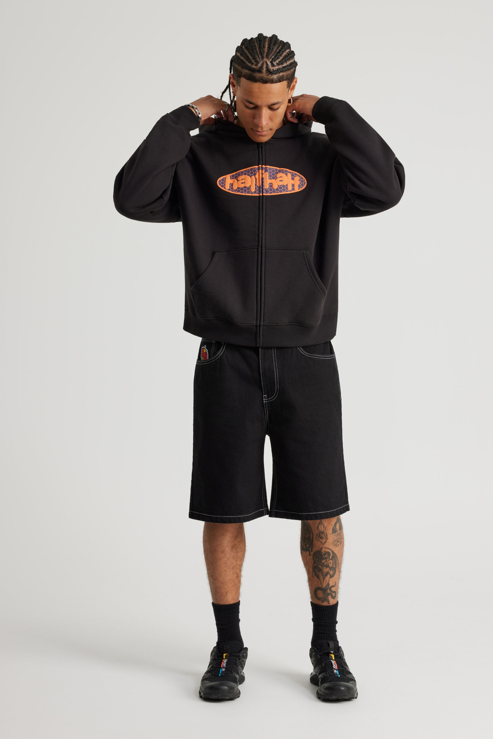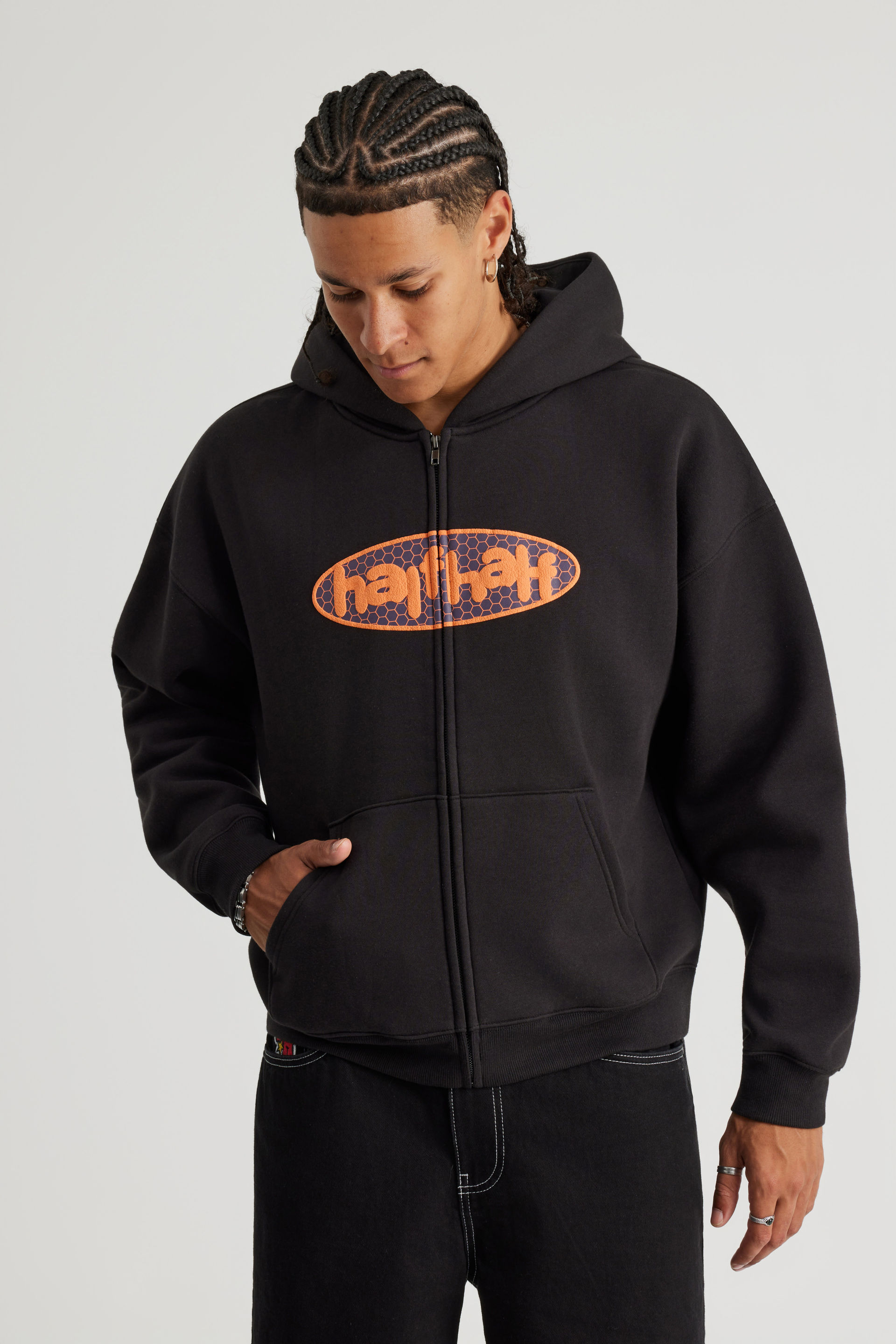 Half Half Zip Thru Hoodie, HH BLACK / HIVE PILL