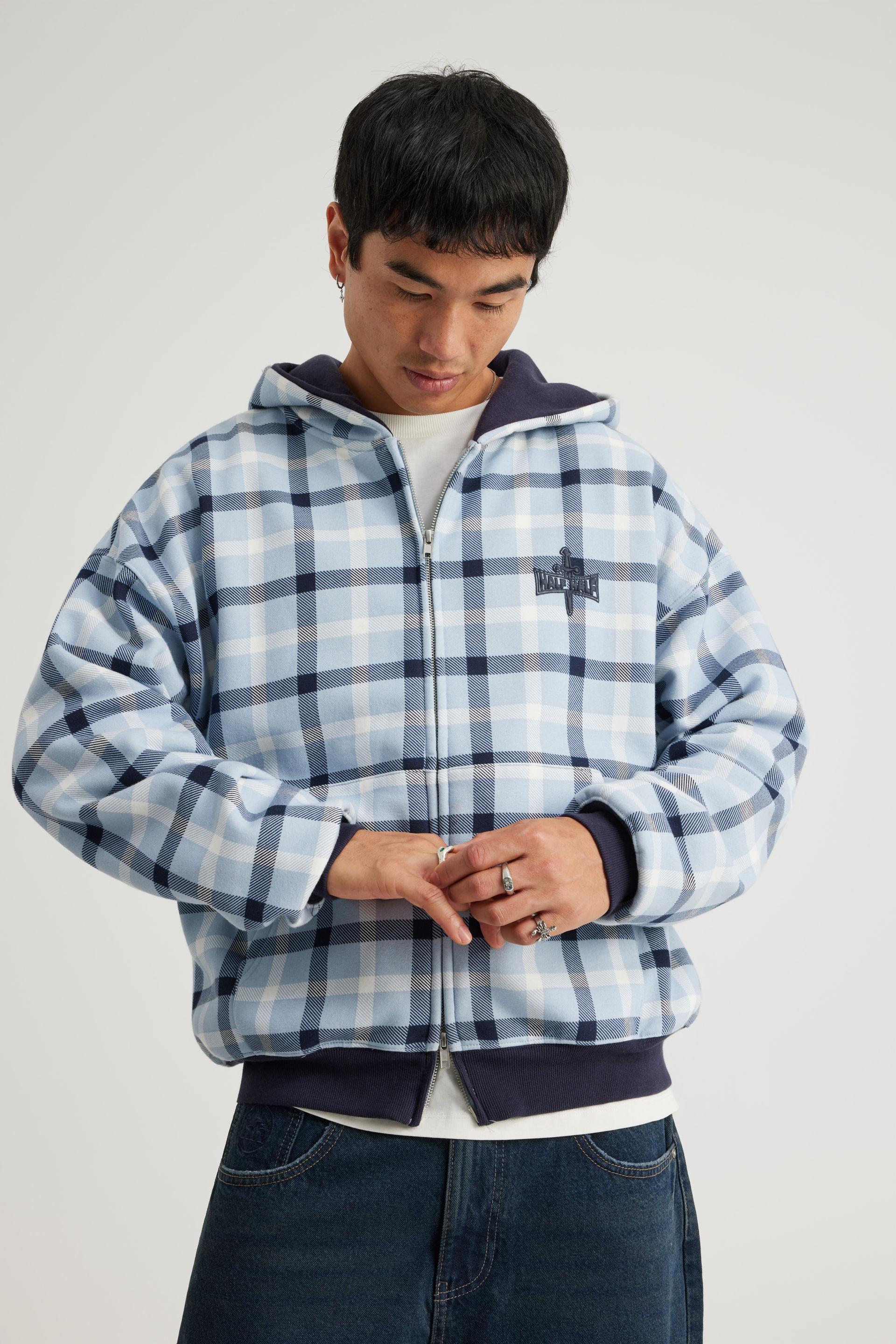 Half Half Zip Thru Hoodie, HH CITY SKY CHECK