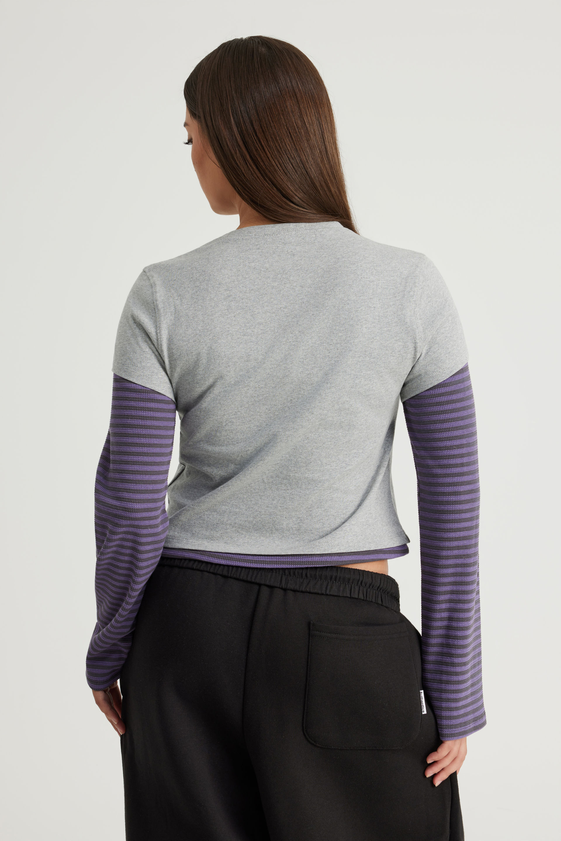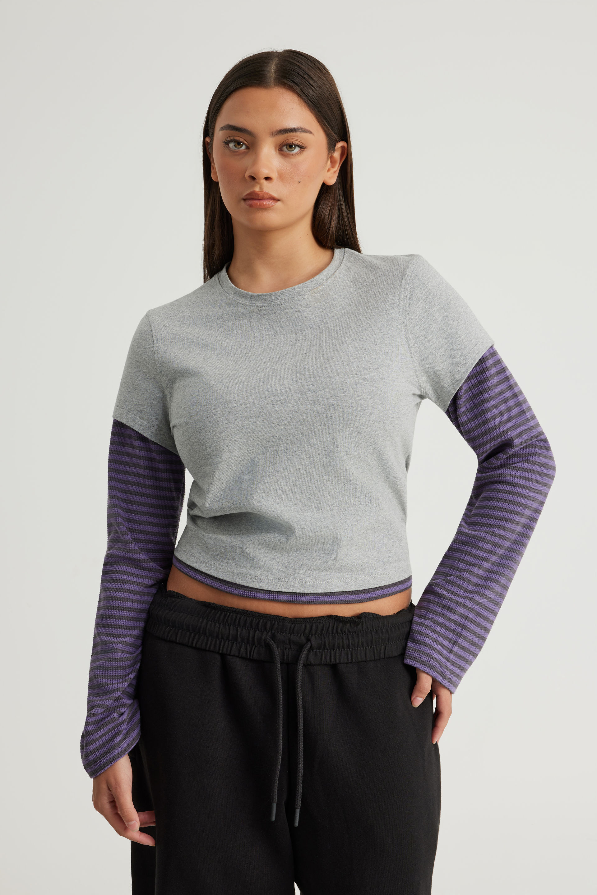 Layered Long Sleeve Top, GREY MARLE/JASMINE BLUE STONE STRIPE