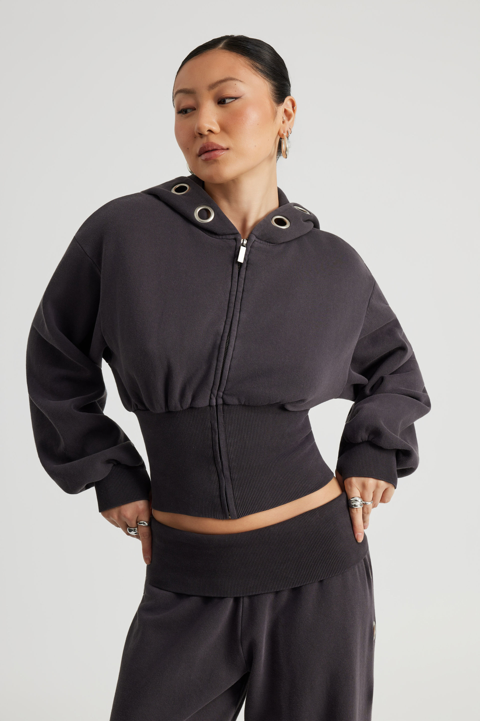 Notion Corset Zip Through Hoodie, NTN WASHED BLACK/EYELET