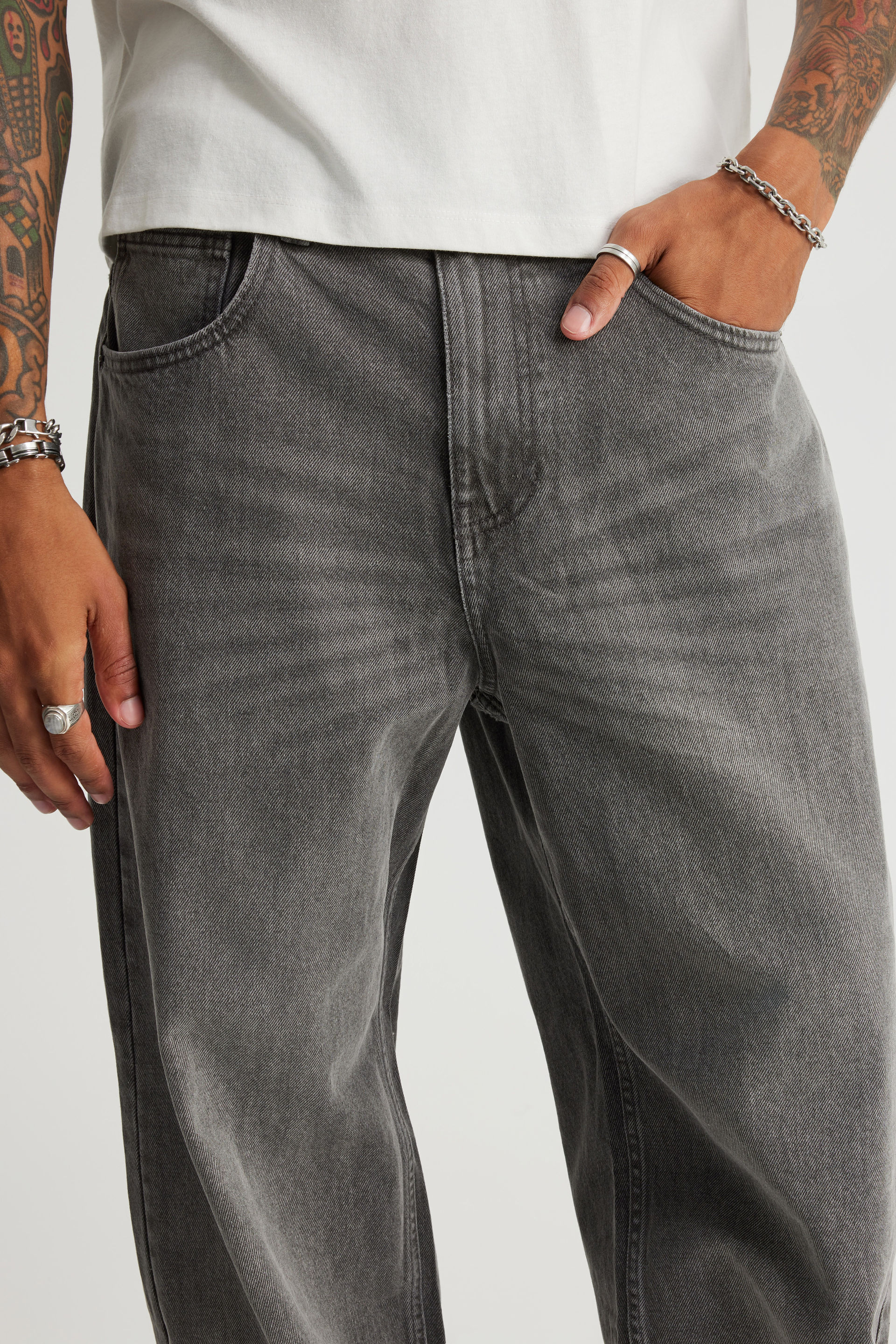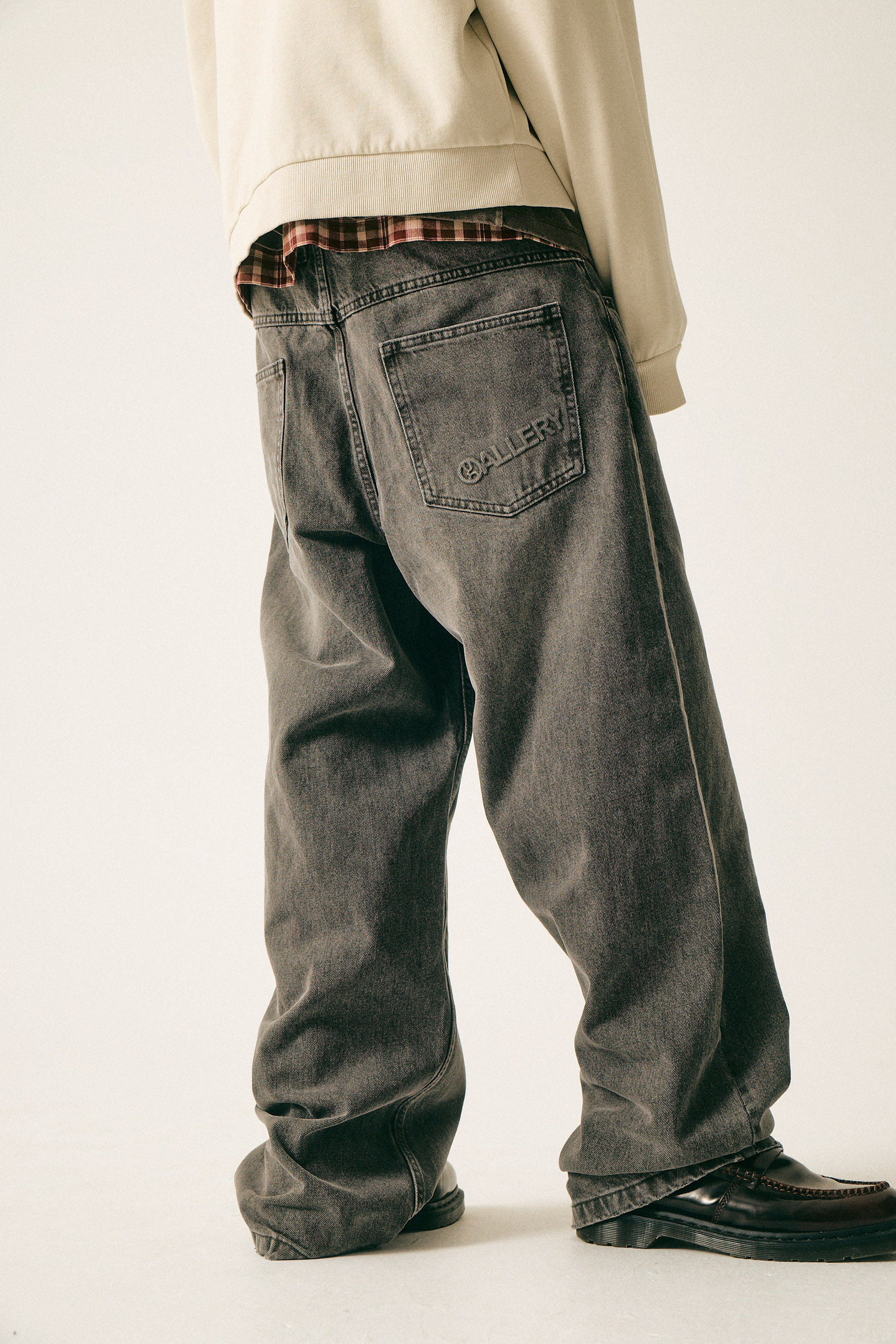 Standard rise Baggy fit Heavy weight rigid denim Internal Drawcord Wide leg silhouette Fixed waist