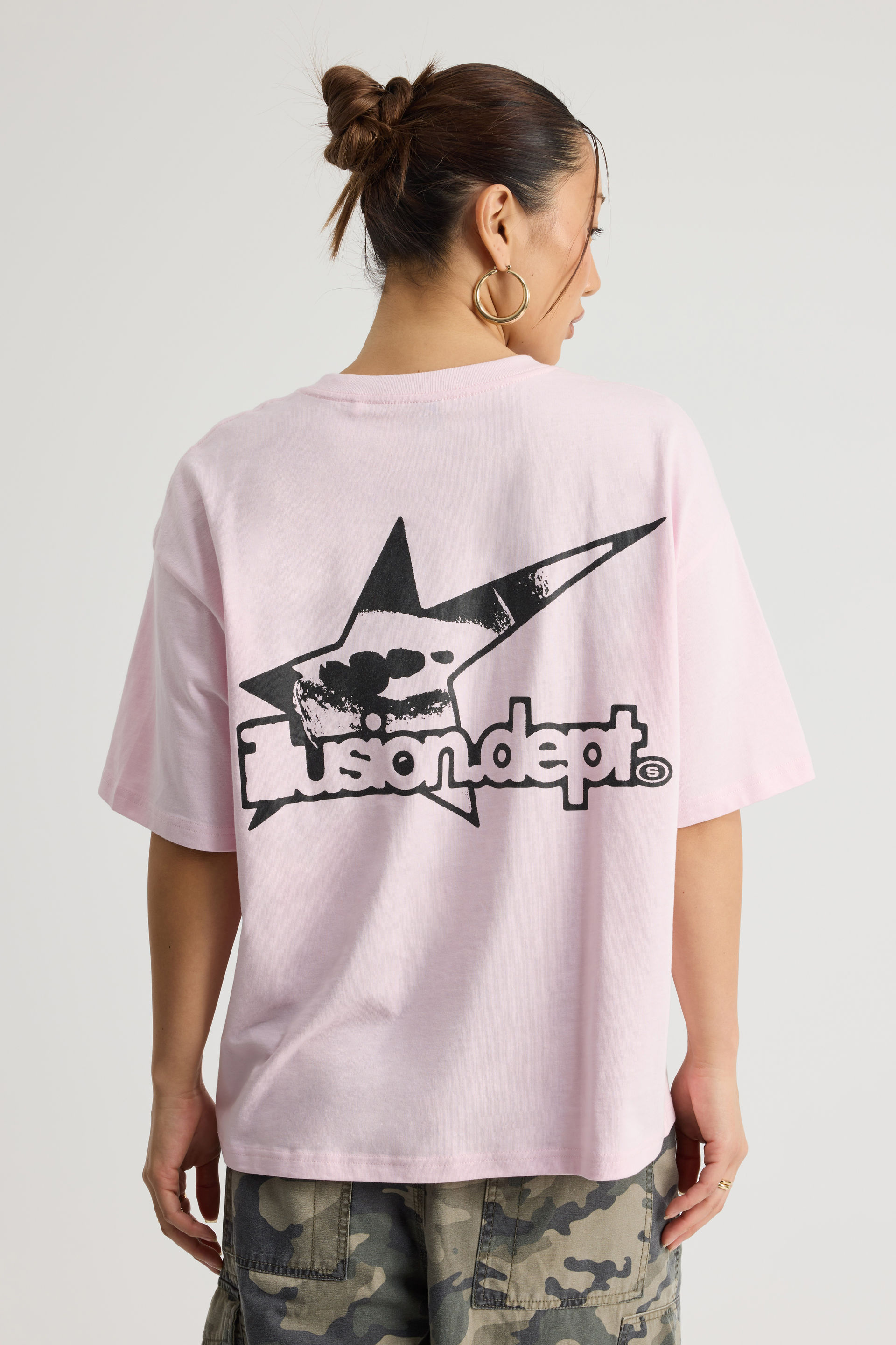 Oversized Graphic Tee, PINK ICE/ILLUSION DEPT