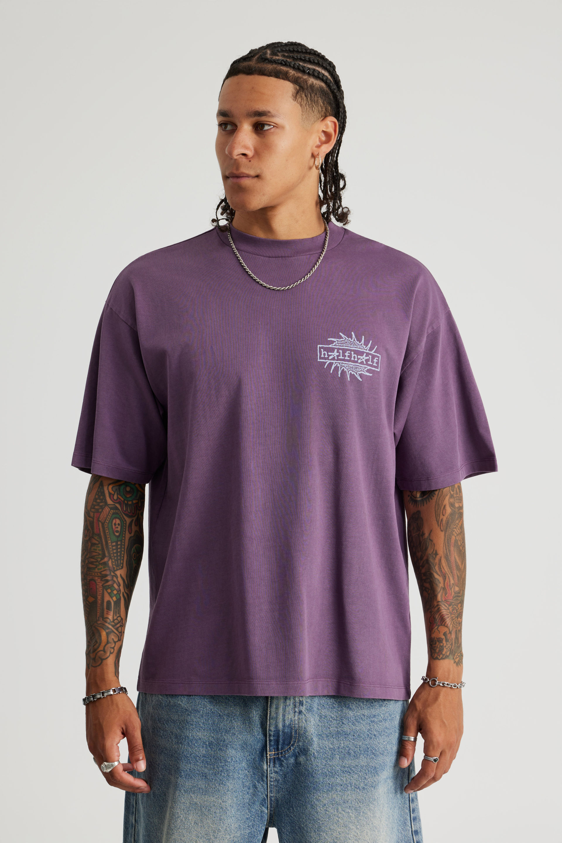 Half Half Heavyweight Box Fit Graphic Tshirt, HH WASHED DEEP GRAPE/HALF HALF ICARUS