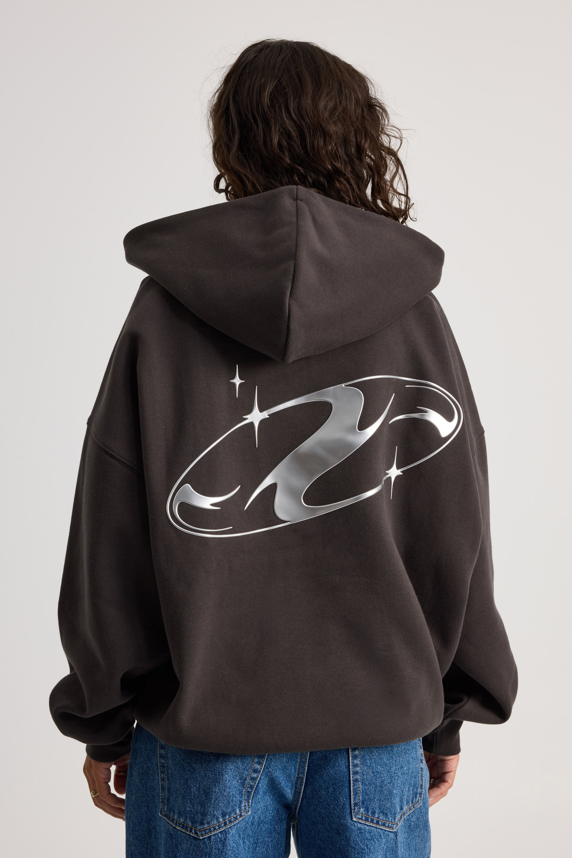 Oversized Silhouette Full Coverage Hood Drop Shoulder Graphic Print Brushed Fleece Front kangaroo pocket Print graphic