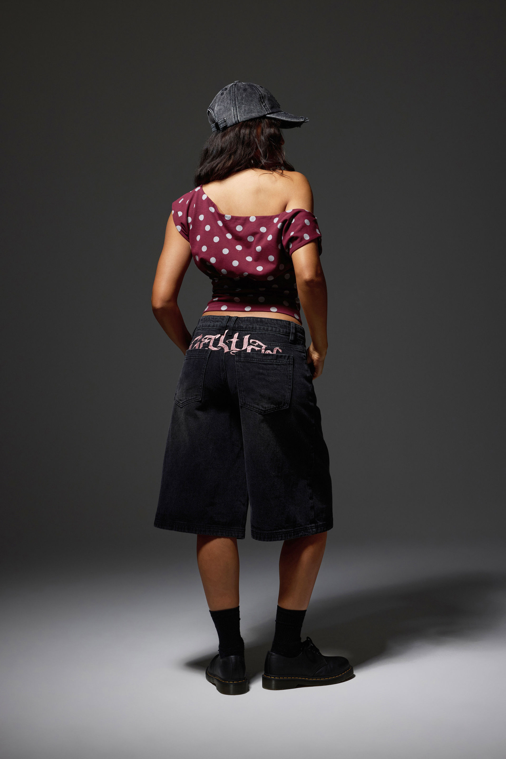 The baggier the better!!! Our Mega Baggy Jorts are here to take up space and to offer you the ULTIMATE comfort. An extra relaxed silhouette that cuts off just below the knee. Featuring a mid rise and unique fashion embroidery across select fits. Pair it back with your favourite hoodie for your new go-to outfit.