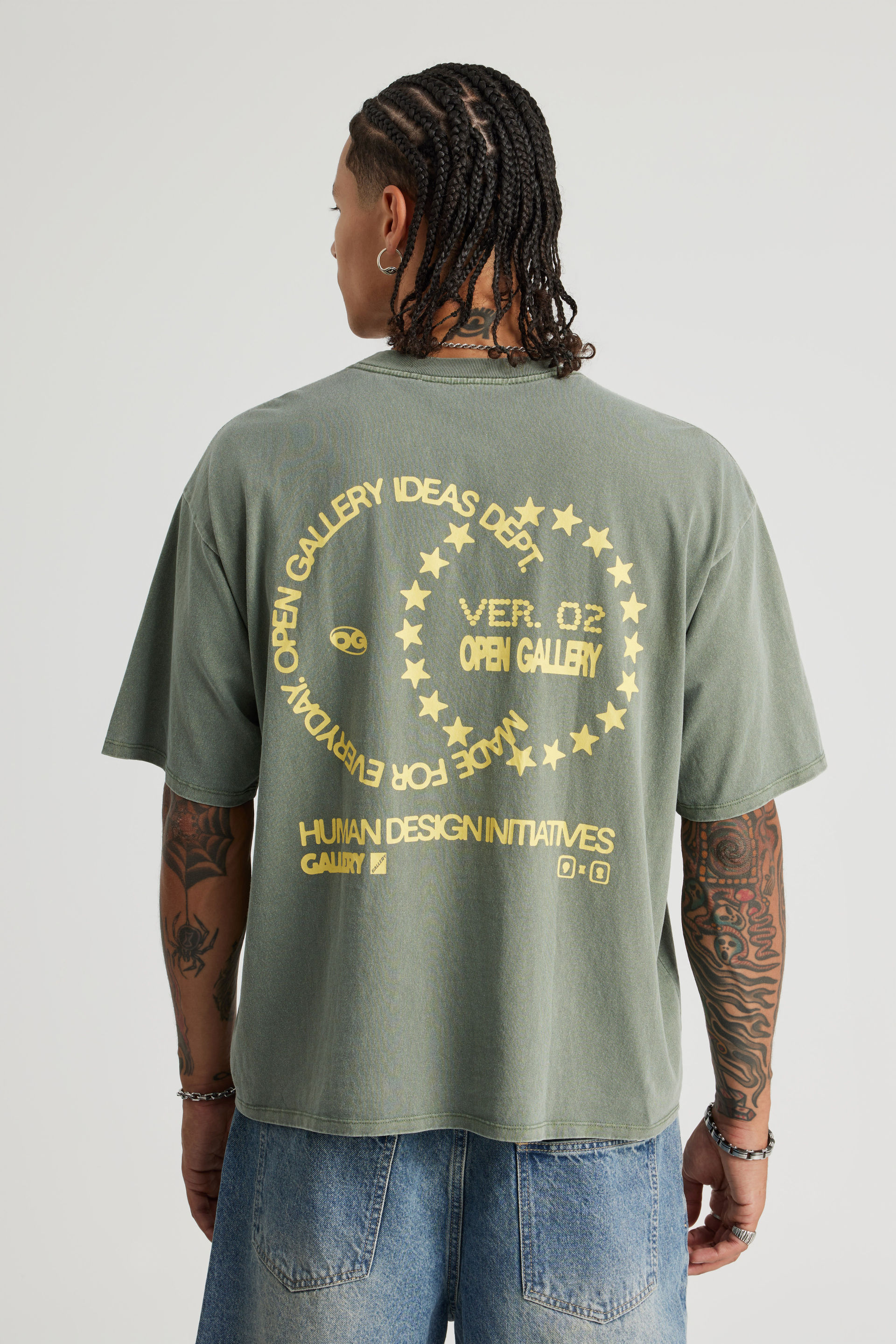 Open Gallery Box Fit Tshirt, OG WASHED DIRTY SAGE/CIRCULAR OG