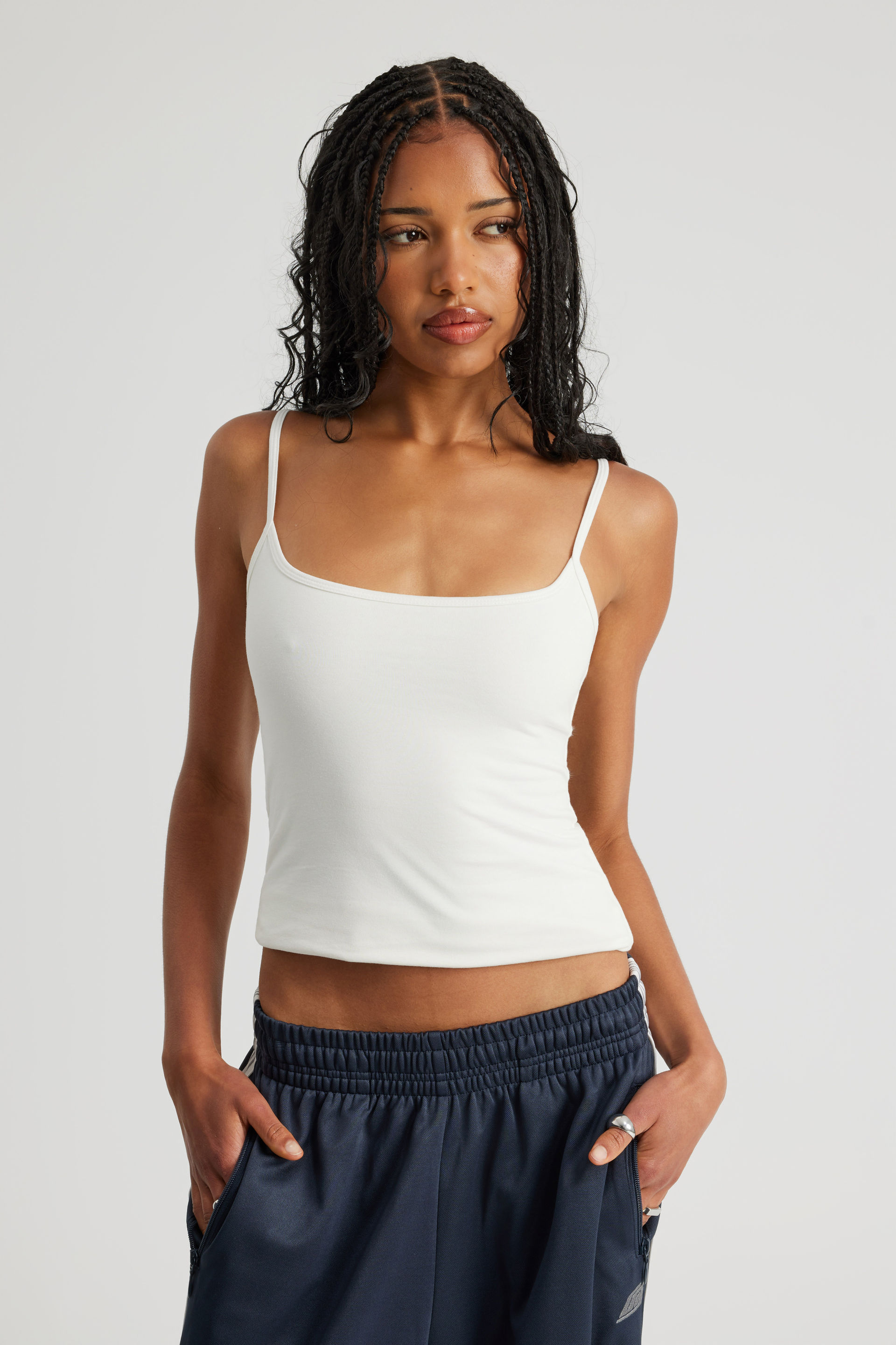 The most snatched tank you'll ever buy. Expect to receive compliments. This is not your average tank top. Designed with a longline length and a lower open neckline, it gives effortless vibes while keeping things ultra-flattering. Did we mention it's bra-free? Yeah, you heard that right. Crafted from premium, double-layered fabric, this tank hugs you in all the right places without being clingy. It’s smooth, sculpting, and breathable.