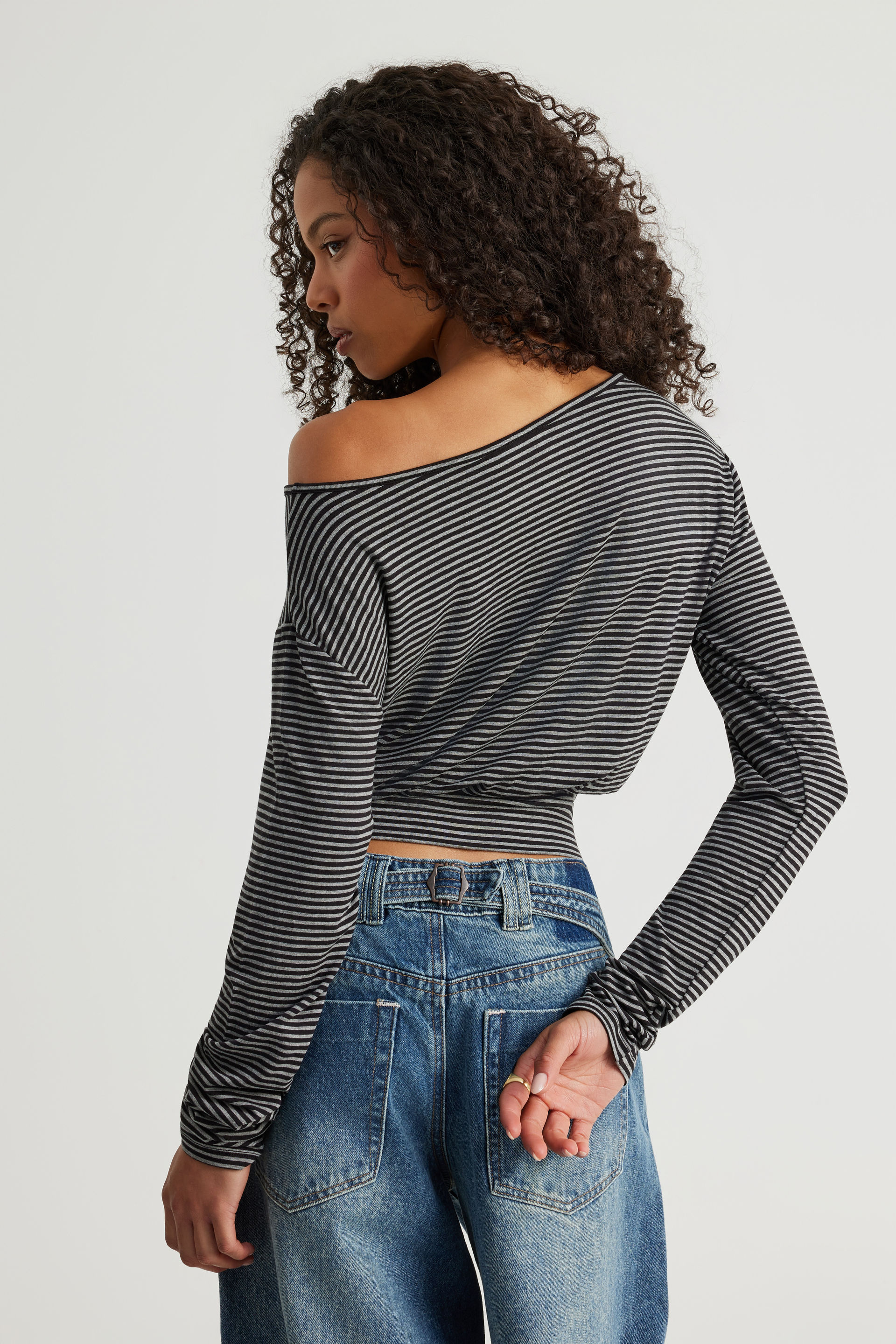 Long Sleeve Off Shoulder Top, BLACK/GUNMETALMARLE STRIPE
