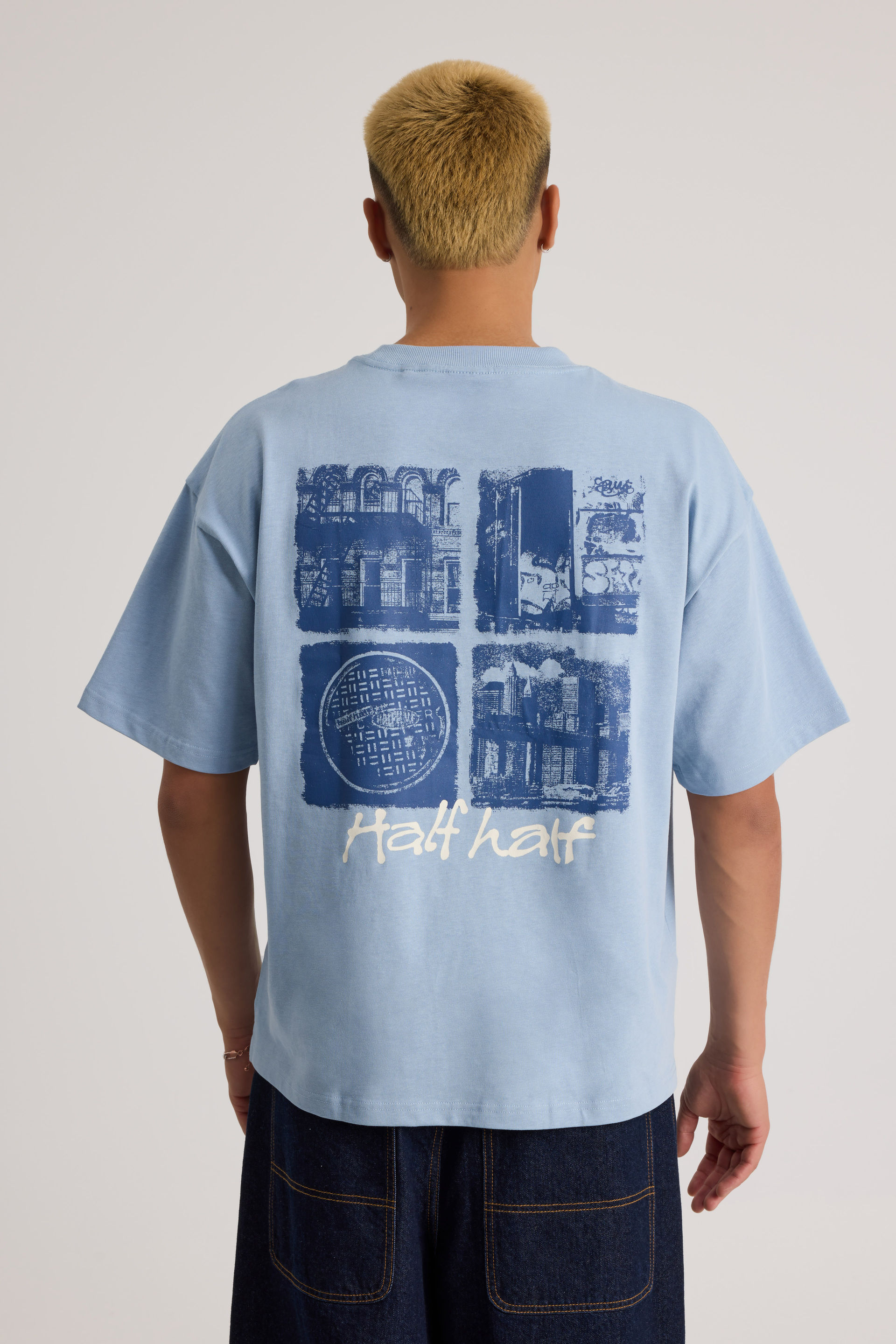 Half Half Heavyweight Box Fit Graphic Tshirt, HH BLUE MIST/HALF HALF STAMP