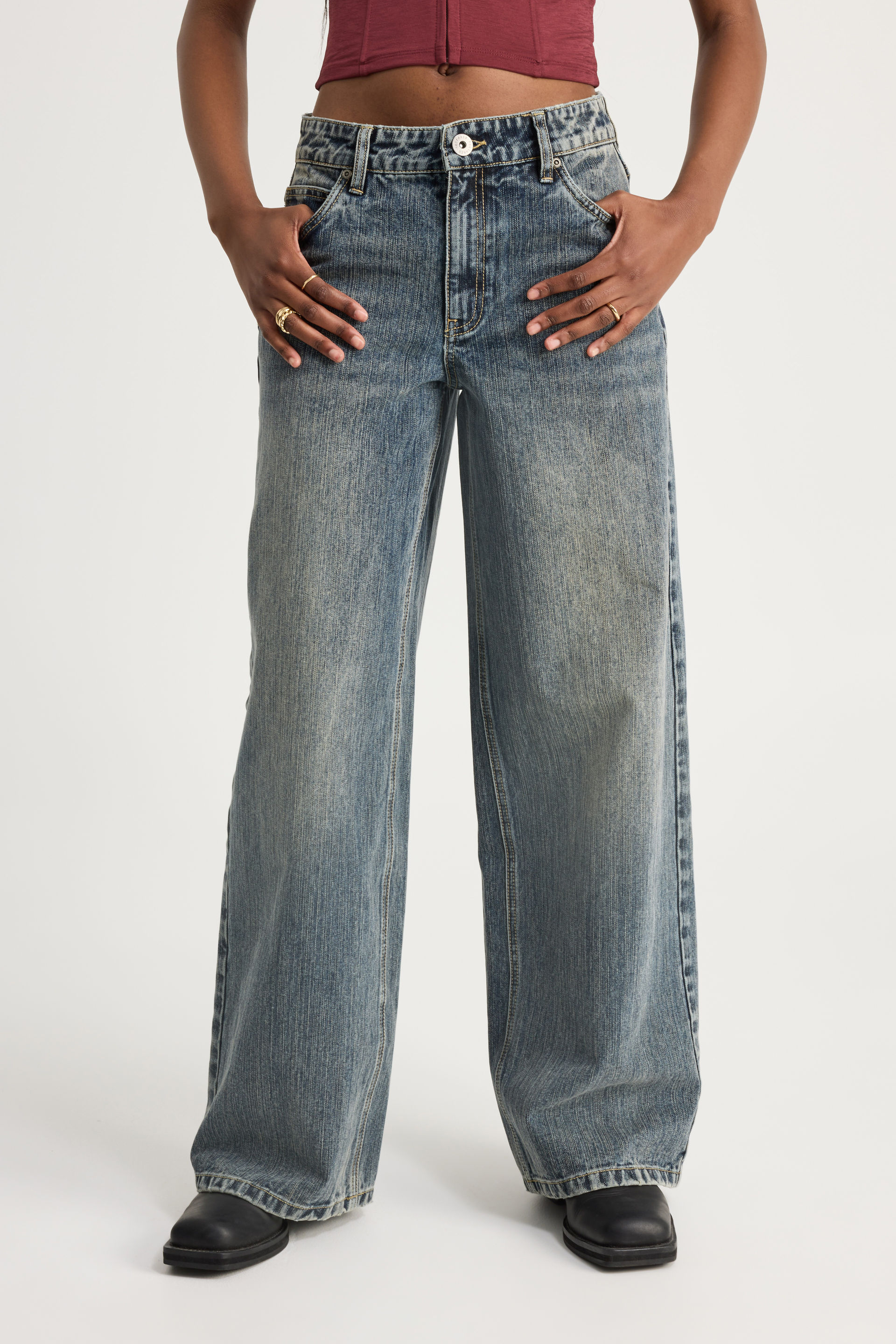 Everyday comfort. Easy confidence. The Mid Rise Baggy Jean sits right on the waist with a relaxed wide-leg cut that gives you room to move. Made from y2k denim with substantial weight to touch — it's got structure without the stiffness. Throw on an oversized hoodie or graphic tee and you're set for everyday wear.