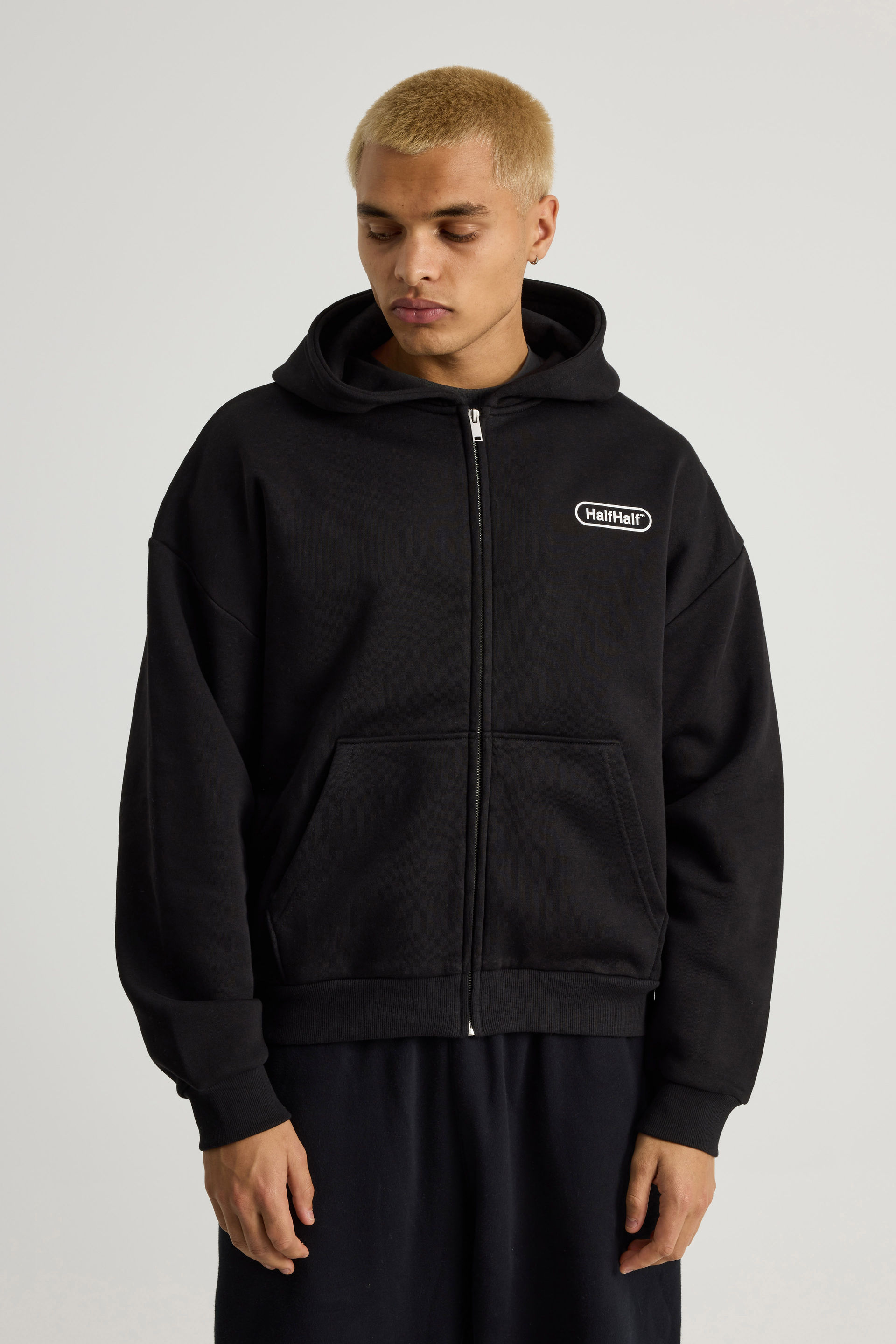 Half Half Zip Thru Hoodie, HH BLACK/WHITE PILL