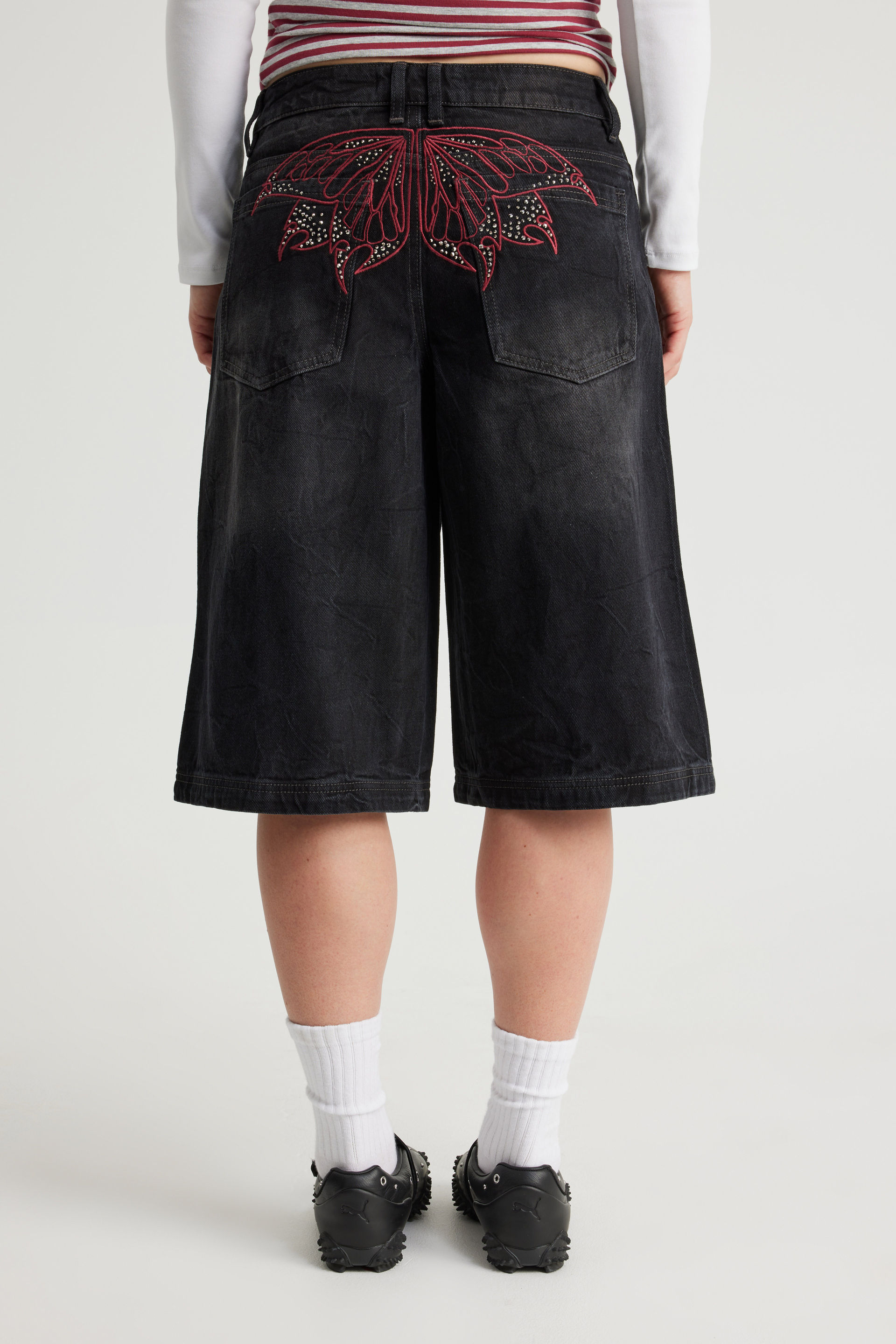 An extra relaxed silhouette that cuts off just below the knee. Featuring a mid rise and unique fashion embroidery across select fits.