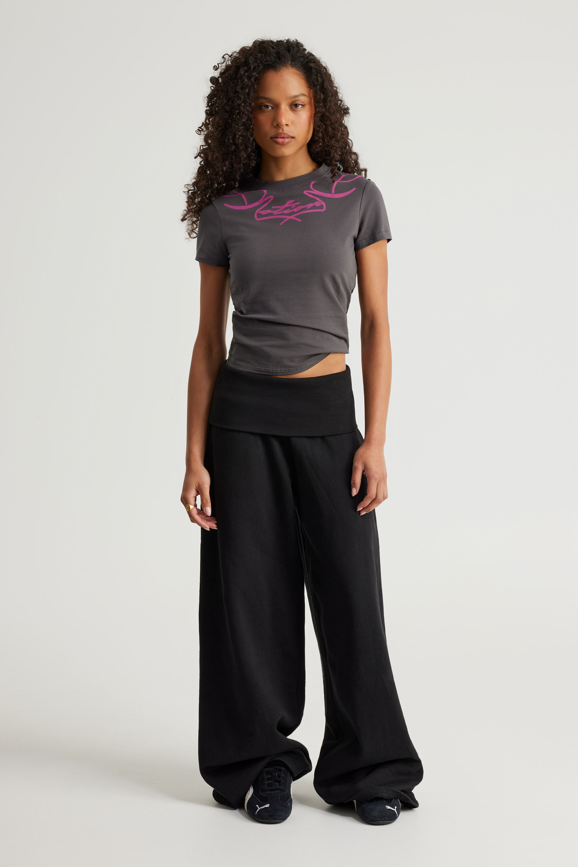Slim shape, bold energy. The Fitted Graphic Tee is soft, stretchy and ready to go wherever your day lands. The print brings attitude without the noise. Tuck into your denim or layer under a fleece — it’s an instant outfit starter.